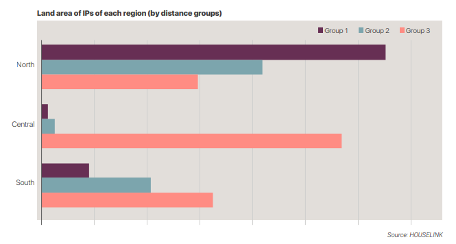 When we delimit the industrial parks in regions according to distance group to the nearest highway, airport, or seaport. The central region is bordered by the sea so the industrial parks are close to the seaport (57.75% of the total of the center’s industrial parks) which is convenient for export-import and trading goods. And in the South, the industrial parks near the seaport also account for 50%. In contrast to the Central, the North’s industrial parks are far from the seaports but near the highways (91.74% of the total of the North’s industrial parks).