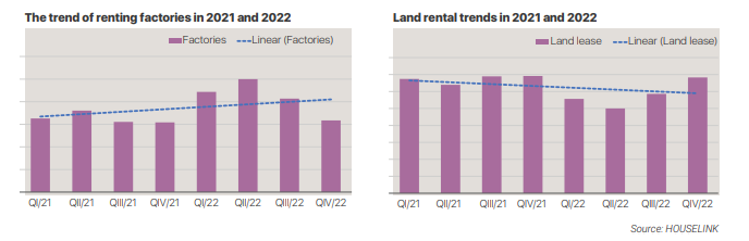 Real estate of newly registered FDI projects in 2021 and the first 6 months of 2022 was very developed. Whereby, we can see that the trend of warehouse rental was raising both sides in a number of projects and registered investment capital. Especially in 2022, this trend is more and more clearly expressed when the number of warehouse rentals in the first quarter of 2022 raised 132% than the fourth quarter of 2021 and raised 193% over the same period of 2021. In the second quarter of 2022, the number of warehouse rental projects also raised 100% over the same period of 2021. The scale of investment capital of warehouse rental projects was also highly raised when the total registered investment of newly registered FDI projects in 6 months of 2022 up to 93% over the same period of 2021. Meanwhile, land lease projects were, on the contrary, both numbers of projects and investment capital scale were trending decreased.