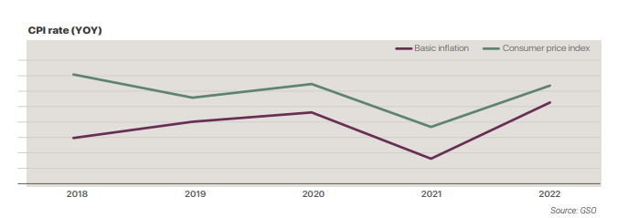 In the first 6 months of 2022, IIP in Vietnam increases about 9%, of which the manufacturing industry increases the most by about 10%. The total of the IIP and the manufacturing industry in 2022 are lower than the growth rate of the same period in 2021 and only higher than the rate of 2020, almost equal to the rate of the same period in 2018. Despite maintaining the growth rate from appearing the pandemic, the world’s price fluctuations, rare materials, especially the price of materials increases highly due to Russia-Ukcraine war and China’s Zero-covid policy has restrained the growth of product output.